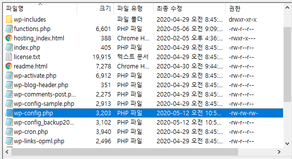 2. ftp서버 내부에서 wordpress가 깔려있는 폴더를 찾고 그 안에 있는 wp-config.php를 다운로드